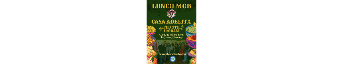 The La Habra Chamber of Commerce cordially invites both the La Habra community and local business owners to join us for our upcoming **Lunch Mob** at **Casa Adelita**.